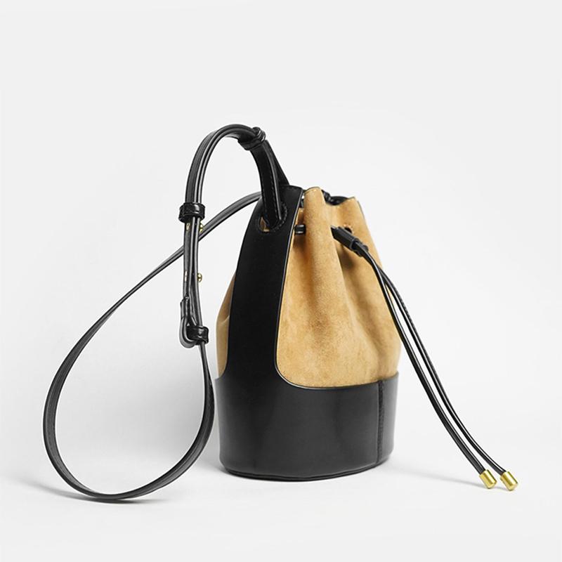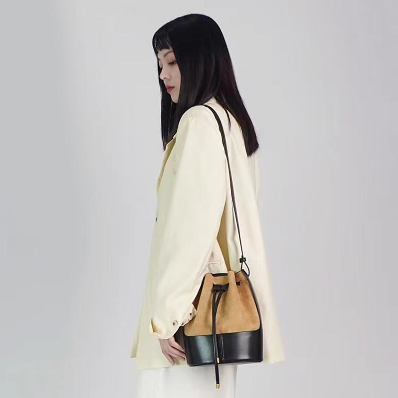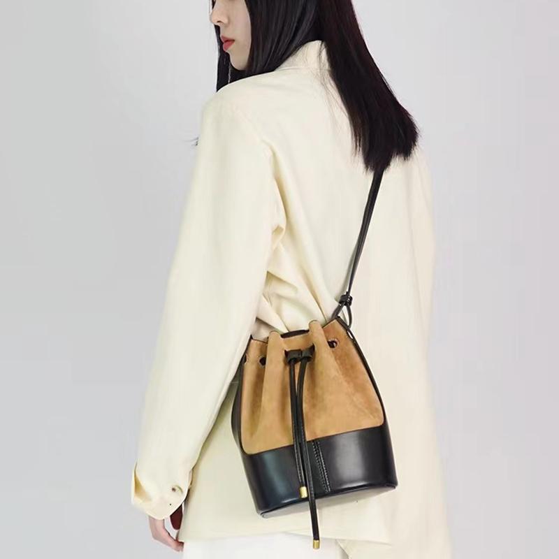 2021 china fashion korean brown black mini single shoulder purse drawstring bucket bag