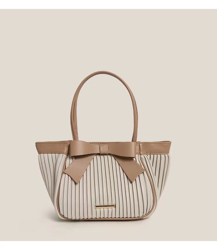 Feather: Small capacity, double handles, and bowknot decoration on the front, contrast PU color for this bag, which makes more different and nice.