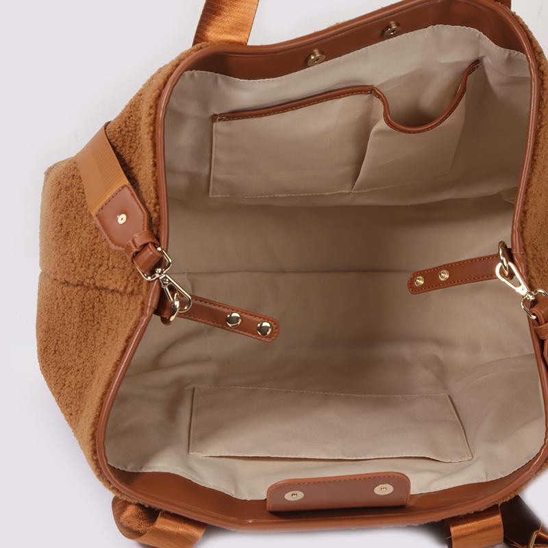 custom winter faux rabbit fur leather ladies tote hand bag women shoulder purse shopper handbag