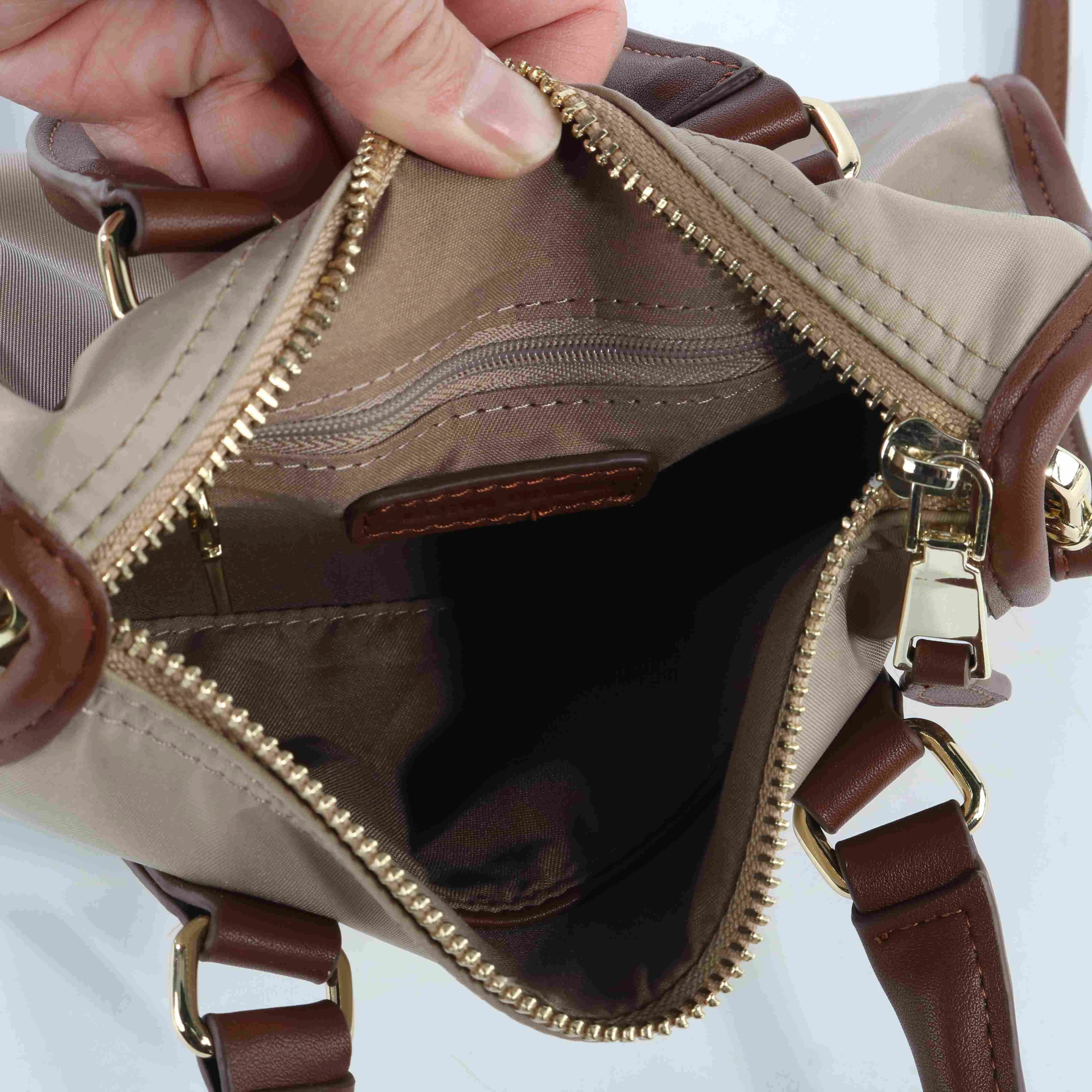 - Material de primera calidad: Water-resistant nylon body paired with genuine leather handles, trim, and detachable shoulder strap for a luxe, durable finish.