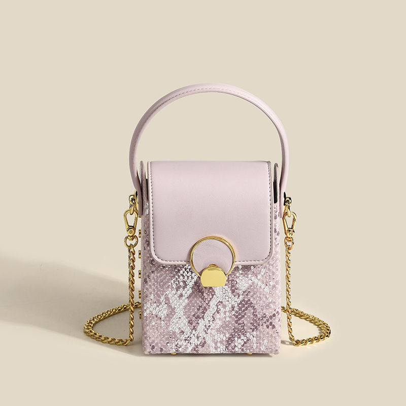 Features: Small size, chain shoulder strap, double flap with snake head metal as decoration. Multifuctional — handbag and crossbody bag.