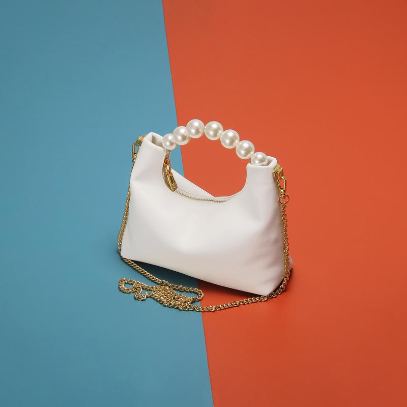 4) Soft PU bag with white round pearl handle