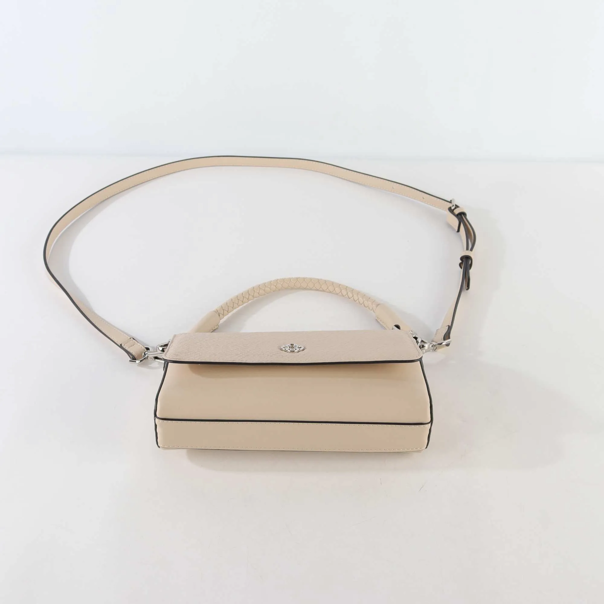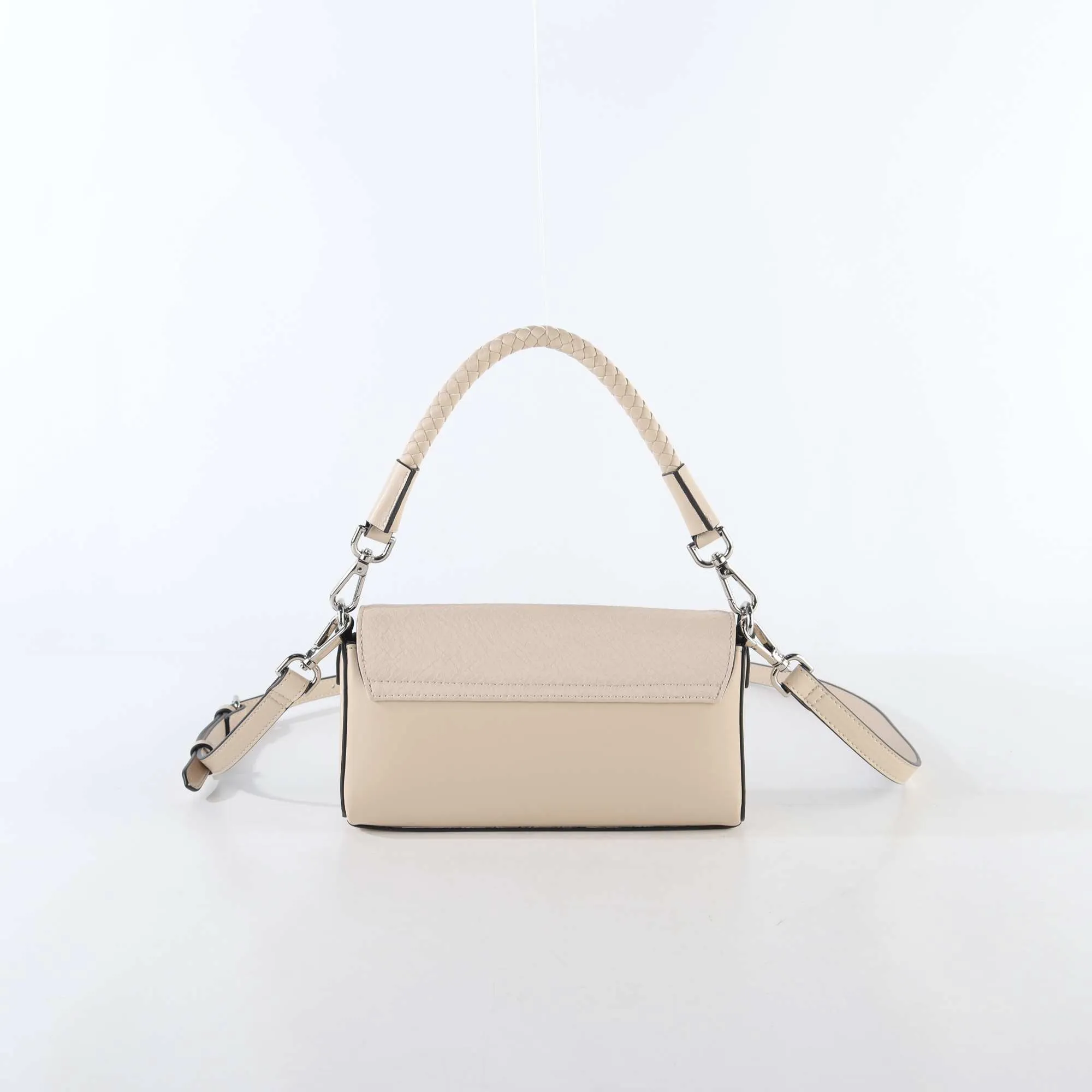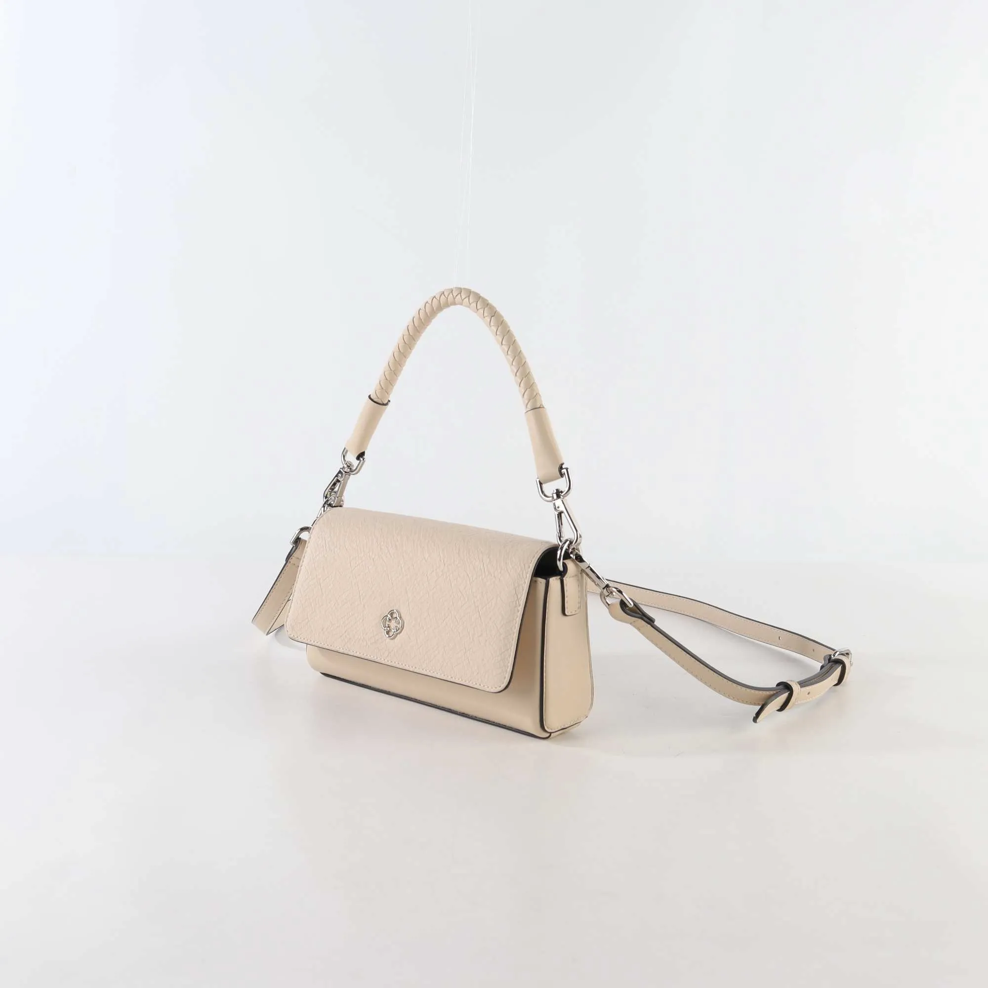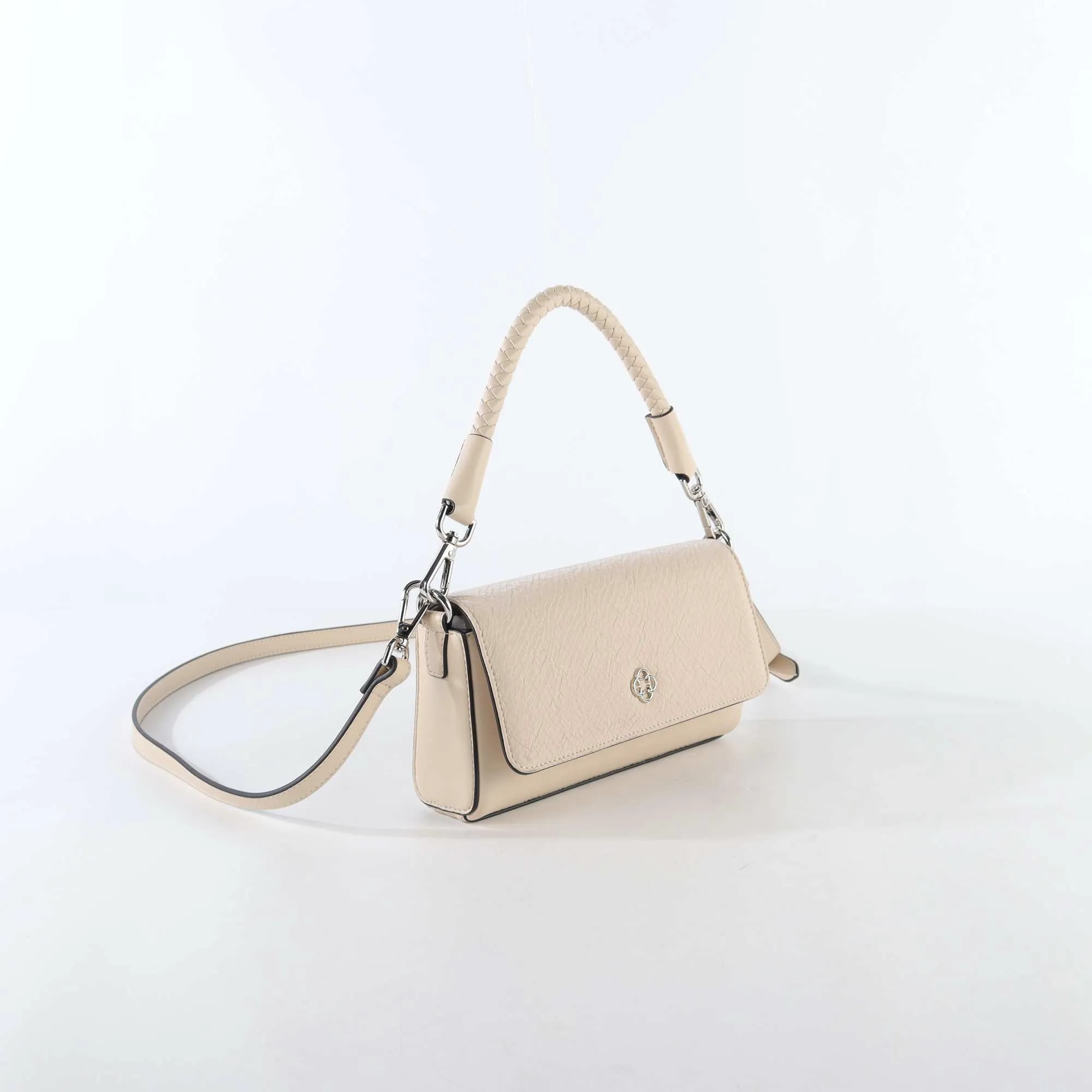Cream Textured Leather Crossbody Bag – Convertible Top Handle Handbag with Adjustable Strap for Women Daily Use