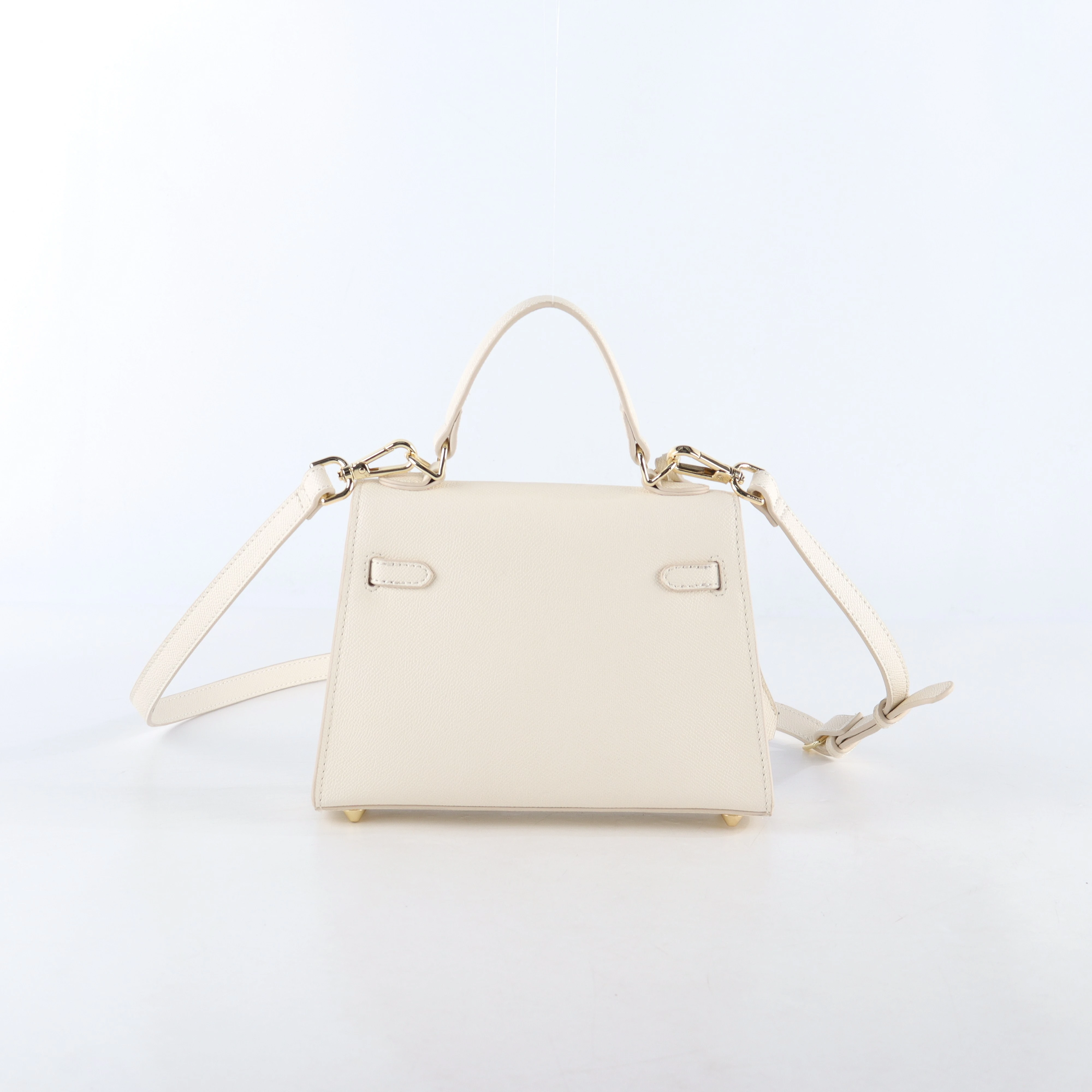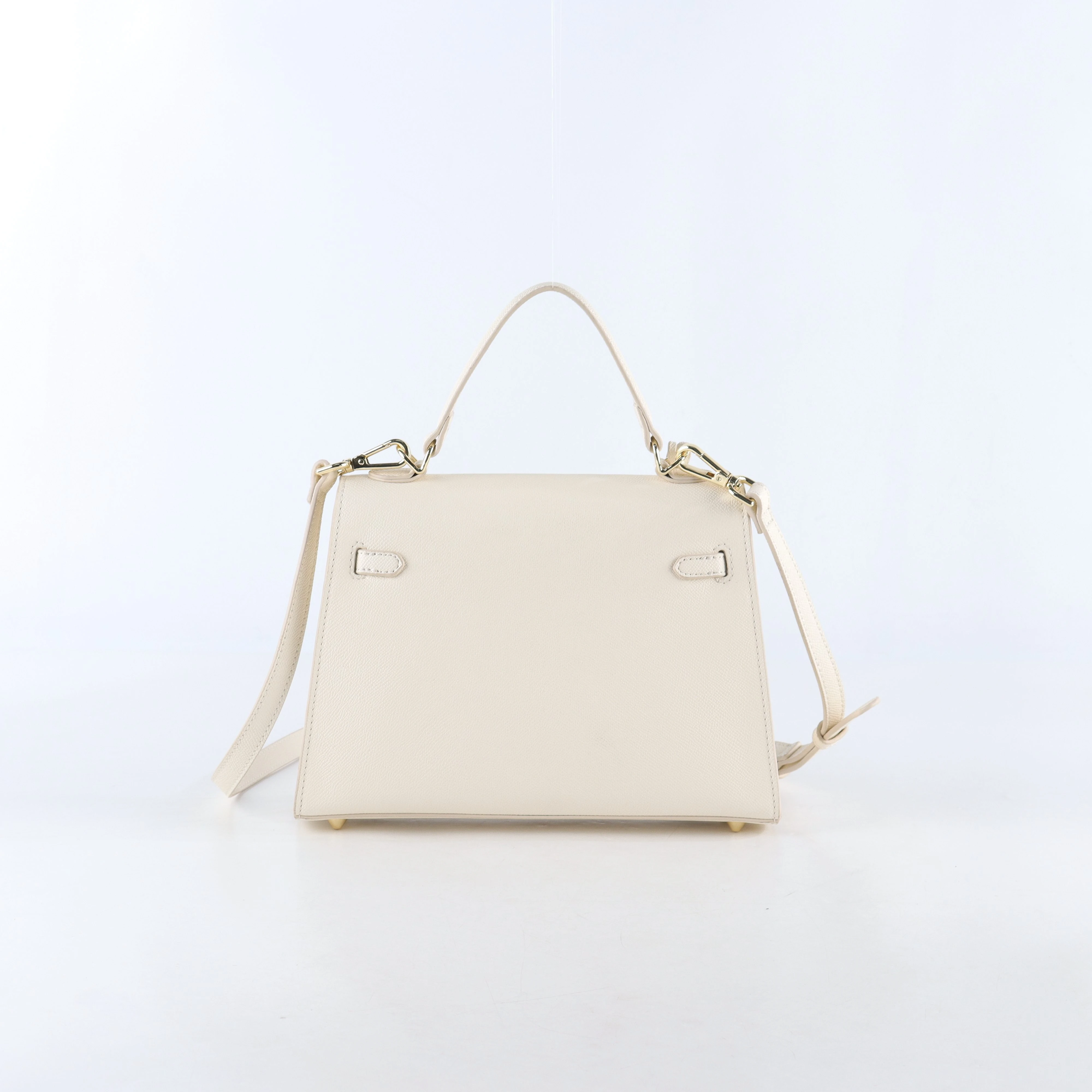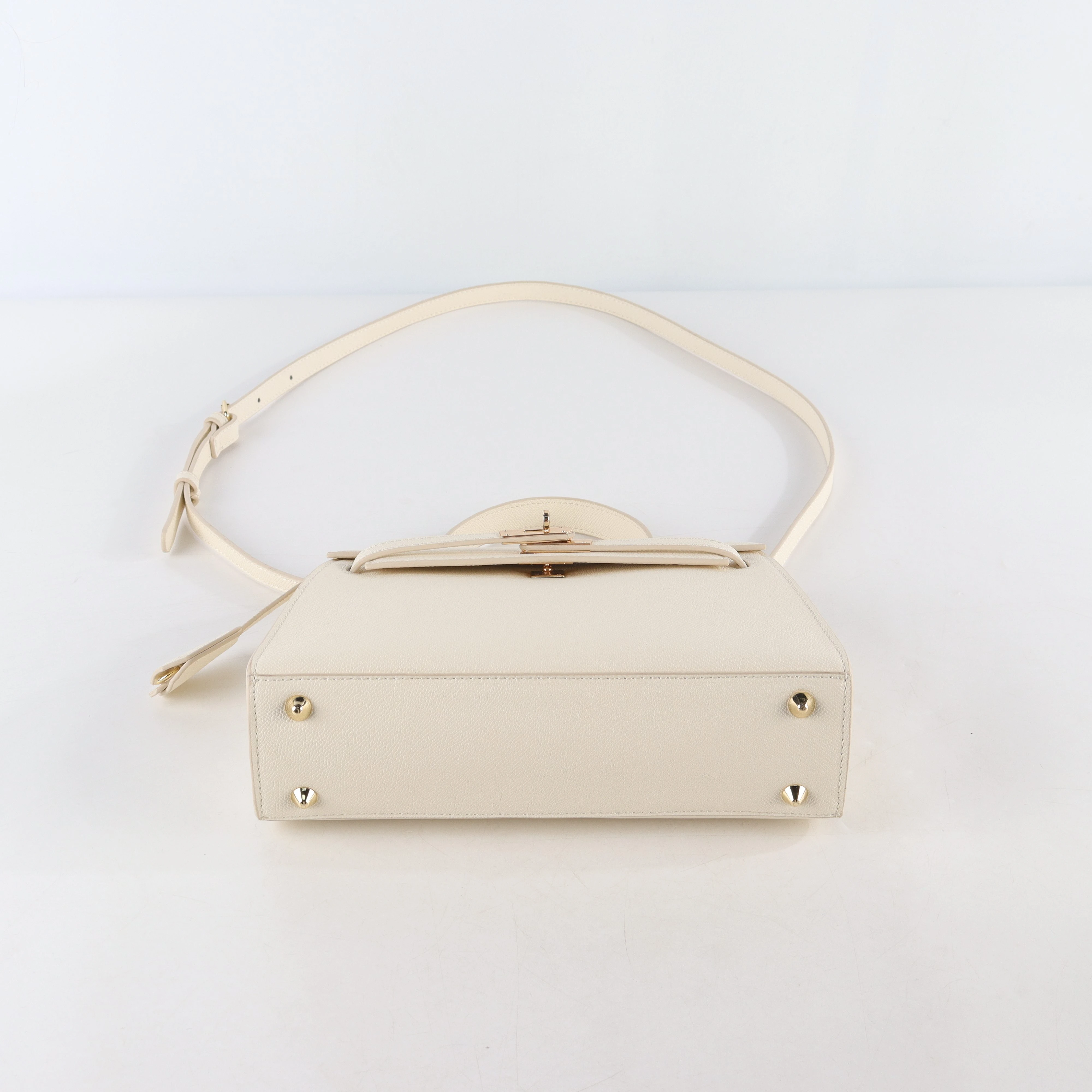 - Protective Feet: Metal base studs protect the leather from scuffs and scratches, extending the bag’s lifespan.