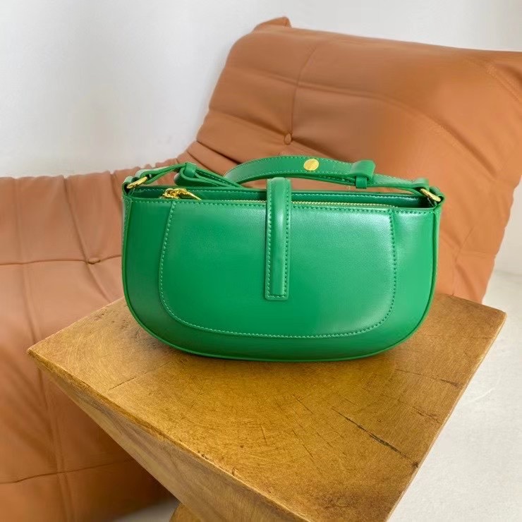 Feather: Middle size, adjustable long shoulder strap, lock closure on the