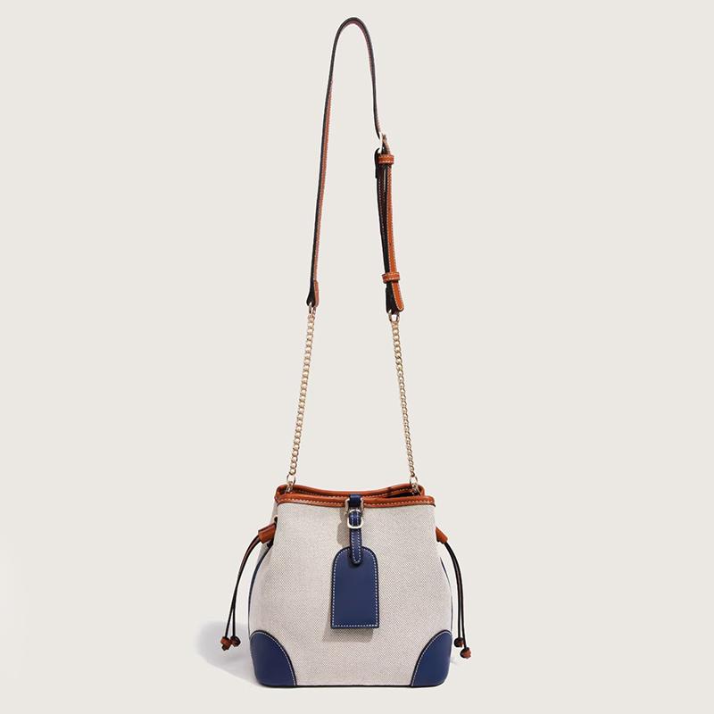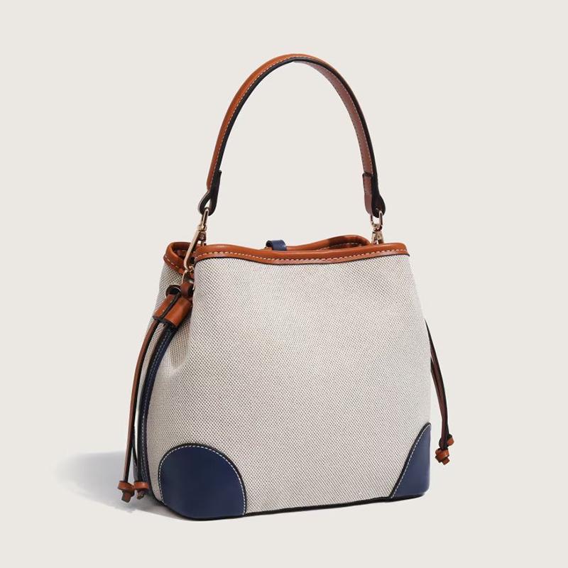 Women′ S Bag 2021 New Ins Fashion Handbag Mother′ S Canvas Leather Bucket Shoulder Hand Bags